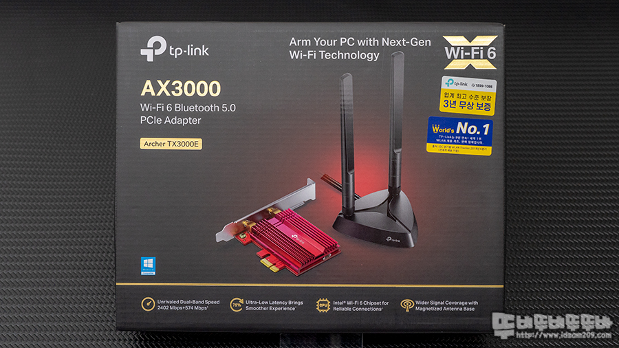 TX3000E 무선랜카드는 프리미엄 메인보드에 기본으로 장착된 무선 랜카드를 저가형 또는 보급형 시스템에서도 사용할 수 있는 제품으로 기본으로 WPA3 보안 기술 적용과 2.4 GHz - 574 Mbps, 5 GHz - 2402 Mbps 등 토탈 AX3000 속도 지원 그리고 블루투스 5.0을 지원하는 게 특징인데요.