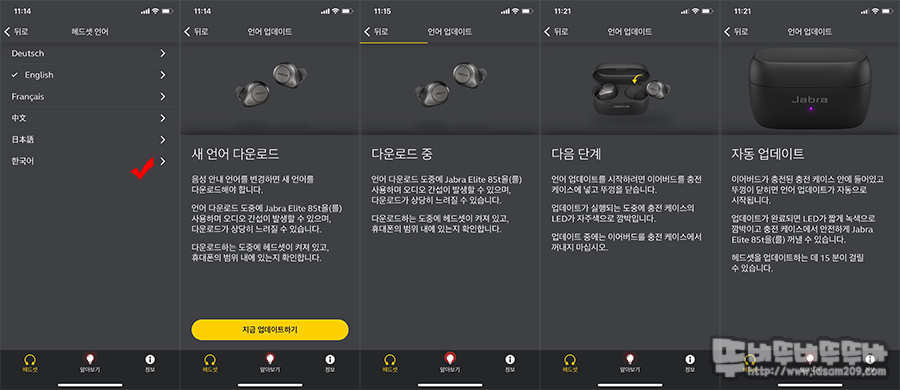 마지막으로 Jabra Elite 85t 사용하기 전 필수로 작업하셔야 하는 음성안내 서비스 언어 변경 설정입니다.