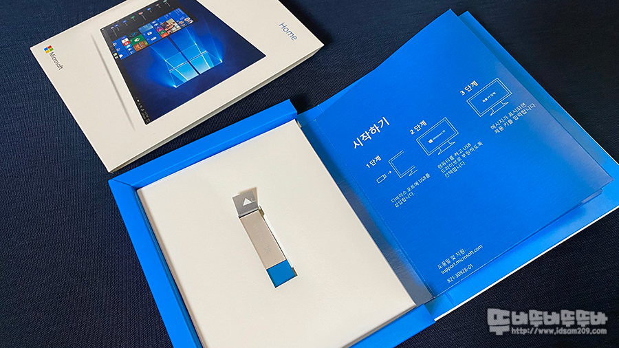정품 패키지에는 윈도우 OS를 USB 메모리에 담고 있는데 오래된 버전이라 윈도우 설치 시 MS 홈페이지에서 최신 OS 버전을 부팅용 USB 드라이브로 직접 만들어 사용하는 편입니다.