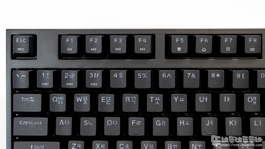 키캡의 기본 베이스인 영문/한글 각인은 이중 사출로 특수 기능은 레이저 각인으로 처리된 것을 확인할 수 있습니다.