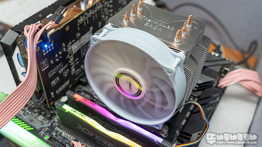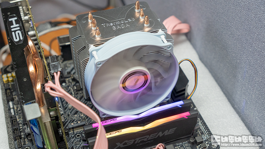 써모랩 BADA 6.0 CPU 쿨러 조립이 완료된 모습.
