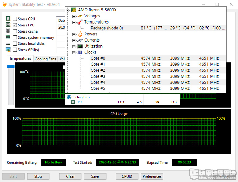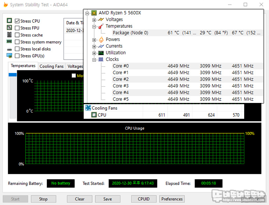 BADA 6.0 쿨러를 장착하고 AIDA64 Stress 테스트 시 Stress CPU 테스트에서는 61도, 부동소수점 테스트로 CPU를 극한으로 테스트하는 Stress FPU 테스트에서는 82도까지 오르는 것을 확인할 수 있는데요.