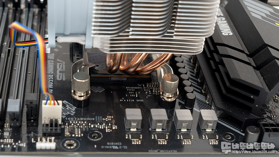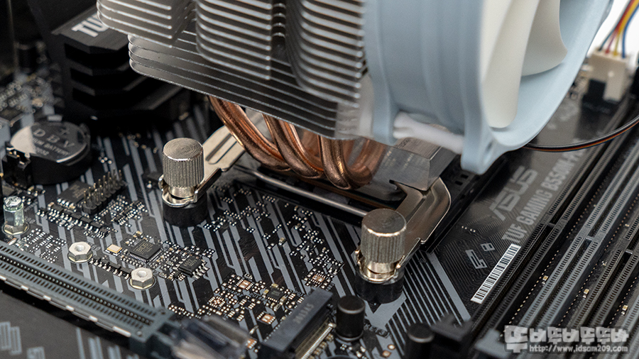 그리고 손너트를 이용하여 단단하게 고정해주고 CPU FAN 커넥터에 쿨러 4핀 커넥트를 연결해주면 됩니다.