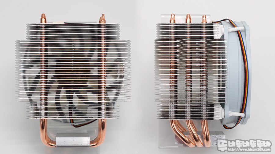 히트 싱크의 중앙부와 상/하단부의 크기가 다르게 적용된 게 특징이며 히트싱크 상단에는