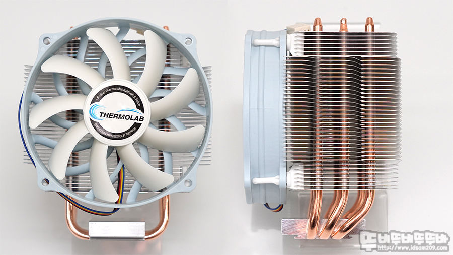 LED 라이팅을 지원하지 않는 112mm 쿨러가 사용된 써모랩 BADA 6.0 CPU 쿨러는 구리 재질의 6mm 굵기의 3개의 히트 파이프와 약 70mm 폭의 히트 싱크로 디자인된 타워용 쿨러입니다.