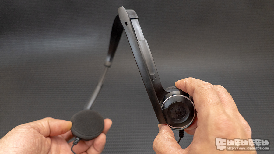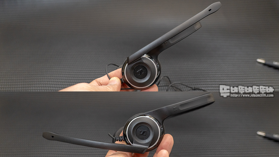 오버이어가 아닌 귓구멍 주변을 커버하는 오프형으로 디자인으로 왼쪽에 회전형 마이크 부착되어있습니다.