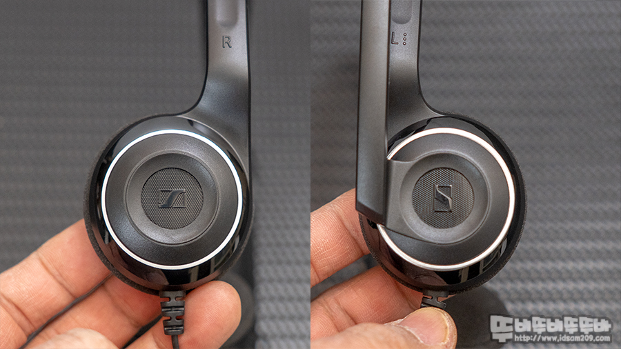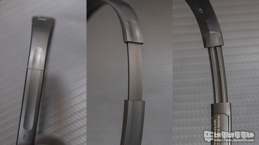 플라스틱 재질의 헤어밴드는 쿠션이 없이 구조로 외부에 젠하이저 로고만 확인할 수 있으며 길이 조절 부분은 확실한 구분감이 없는 편이라 눈대중으로 수평을 맞춰 착용해야 하는데 적응이 필요해 보이네요.