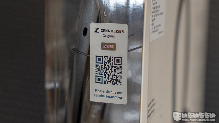 측면에 부착된 정품 홀로그램 스티커와 QR코드 모습.