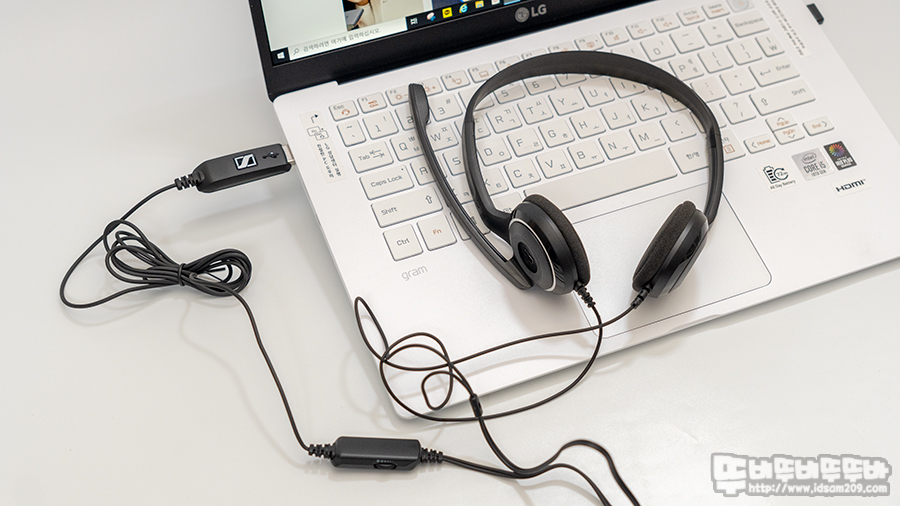 USB 연결로 사용이 가능한 EPOS젠하이저 헤드셋 PC 8 USB은 16비트 48KHz의 사운드와 마이크를 지원하며 기본으로 노이즈 캔슬링을 지원하고 있기에 별로도 설정할 게 없습니다.