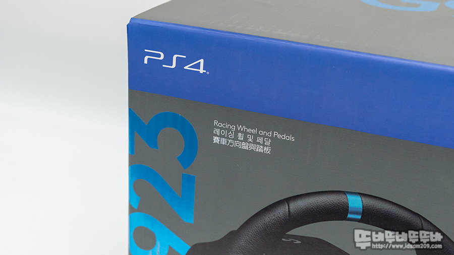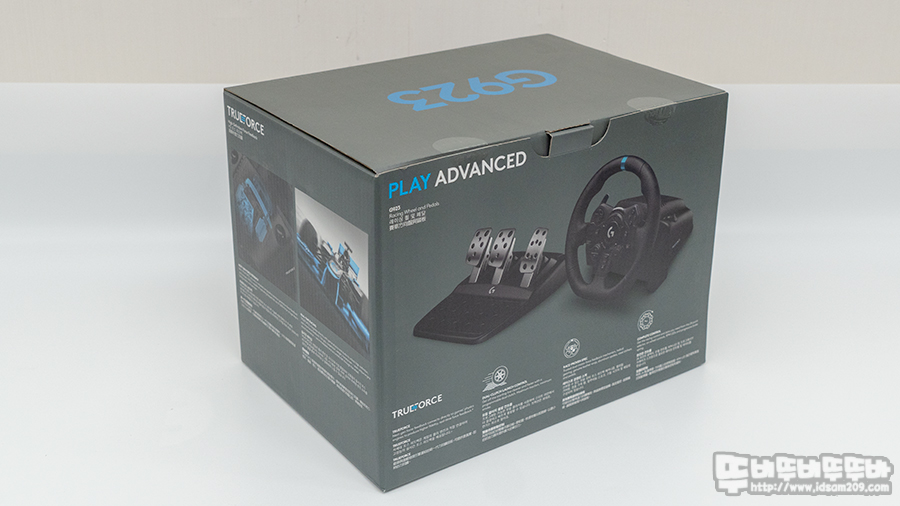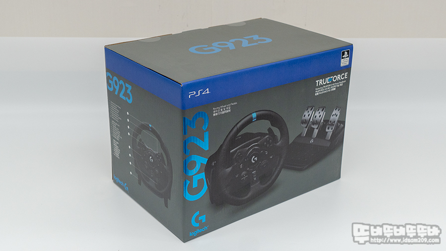 로지텍 G923 트루포스 피드백 레이싱 휠 패키지 모습입니다.