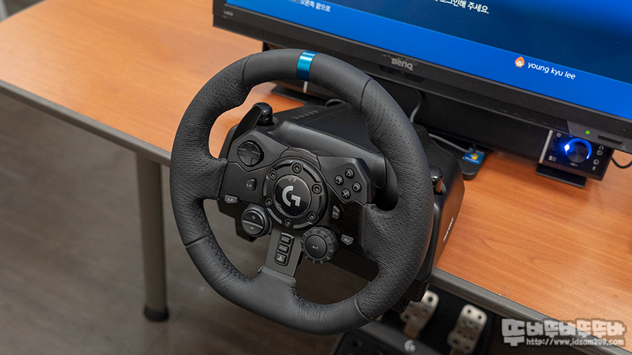 로지텍 G923 레이싱 휠 모습입니다.