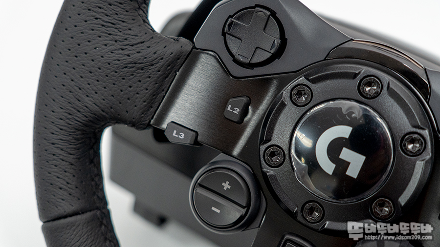하지만, 전체적인 핸들의 외형은 고급 자동차에서 사용하는 인조가죽 휠 커버를 스티치 처리로 마감하여 사실감을 더하고 휠 중앙에는 게임 진행에 도움을 주는 다양한 컨트롤 버튼이 위치하고 있어 게임 시작 전 다양한 선택 그리고 게임 중에 다양한 화면 시점 전환 등으로 게임에 몰입감을 제공하고 있습니다.