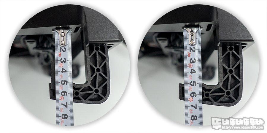클램프와 레이싱 휘 하판은 책상 상판 디자인이 직각으로 구성된 책상에만 장착이 가능하기에 제품 구입을 고려하시는 분들이라면 책상 상판의 높이가 30~50mm 이하에 모서리 부분이 각진 형태로 디자인된 상판에 창작 가능한 점을 고려하셔야 할 거 같습니다.