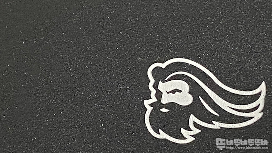 개인적으로 모서리 부분까지 마우스 무빙을 하지 않는 편이지만 해외 유저들의 경우 모서리 부분에 실크인쇄도 각인되는 로고가 크면 마우스 사용 시 방해된다는 피드백을 받아서 그런지 로고 사이즈를 작게 하여 심플한 느낌을 줍니다.