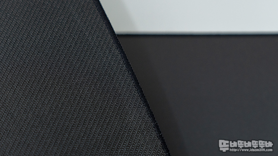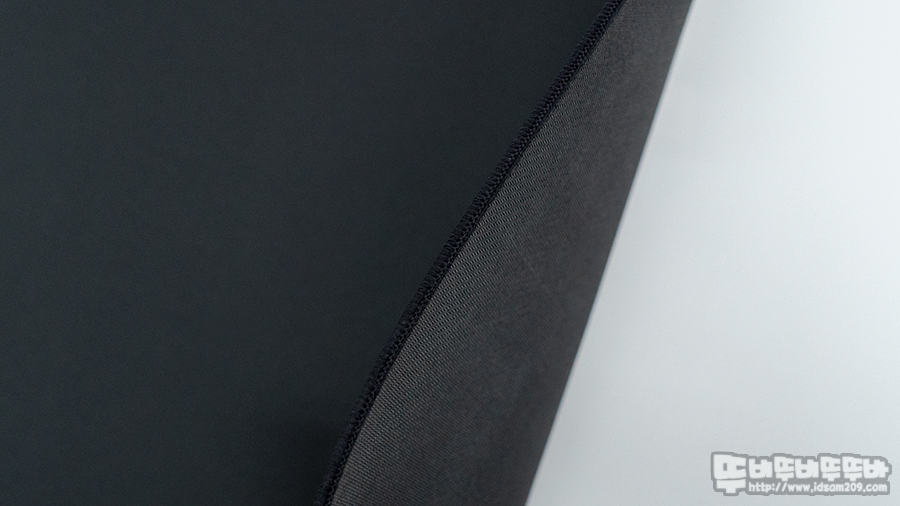 패드의 모서리 부분은 스티치 (일명 오버로크) 마감은 마우스 패드와 일체감이 있는 두께로 단차를 느끼지 못할 정도이며 마우스 사용 시 이질 감 없이 사용할 수 있었습니다.