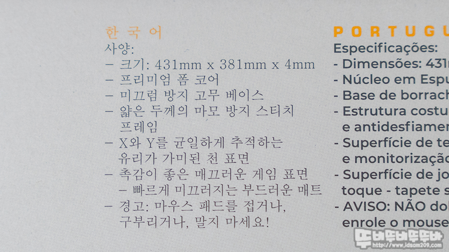 라텍스 베이스의 패드 뒷면은 미끄럼을 방지하는 빗살무늬가 사용되어 패드의 미끄럼을 방지해주며 유리가 주입된 천 패드 표면은 패드 표면이 곱고 은갈치 느낌의 반짝임이 느껴집니다.