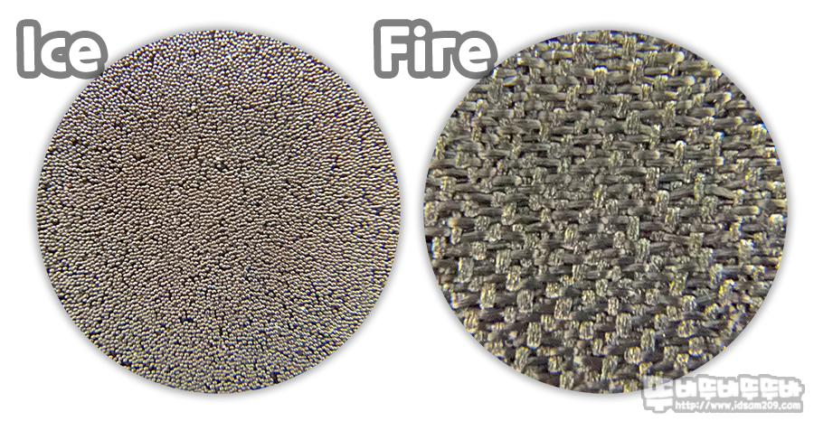 마우스 패드 표면을 확대경을 살펴보면 손으로 만져지는 느낌대로 ICE 패드 표면은 촘촘함, FIRE 패드는 ICE 패드의 표면에 비해 거친 천 원단의 느낌을 시각적으로 확인할 수 있었습니다.