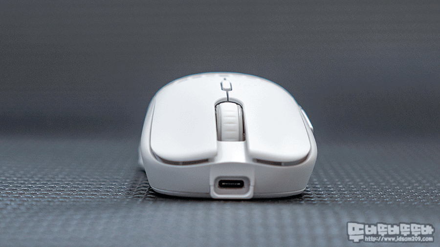 제닉스 타이탄 GX Air 타공 무선 게이밍 마우스는 대칭형 유선 모델인 GX Air 외형과 동일하며 대부분 무선 제품이 그러하듯이 전면에 충전 겸 유선 사용이 가능한 USB-C 케이블이 장착 가능한 USB-C 소켓을 사용한 것 특징입니다.