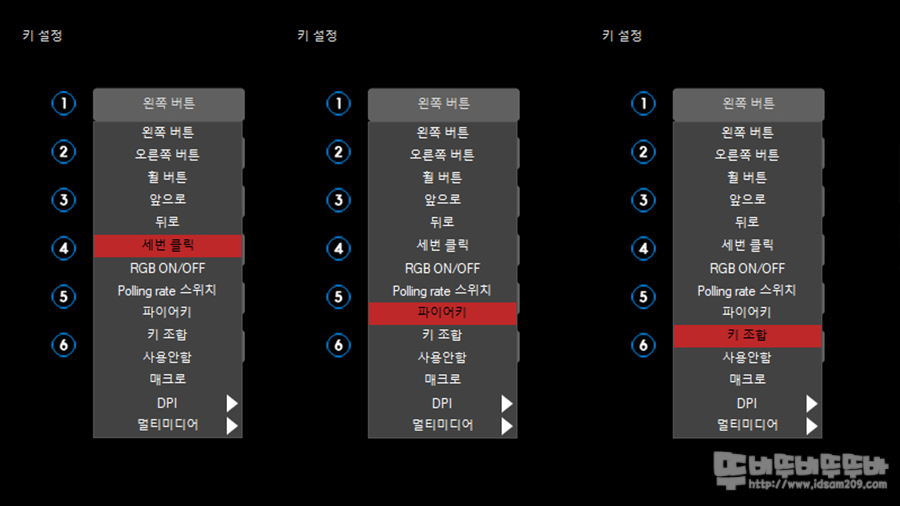- 기본 설정 : 버튼 기능, USB 폴링 레이트, 배터리 잔량 표시