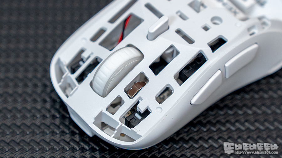 사용 면에서는 큼지막한 사이드 버튼이 만족스러웠으며 타공 디자인 덕에 옴론 스위치 소리가 크게 들리는 부분이 있지만, 이전 유선 모델의 후아노 핑크 스위치보다는 가벼운 느낌이 있어 편안하게 사용할 수 있었습니다.