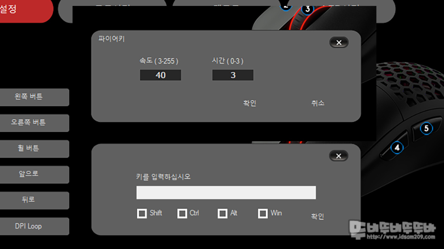 - 파이어 키 : 한번 눌렀을 때 지정된 횟수만큼 클릭 되는 기능이나 소프트웨어 이상으로 잘 구현이 되지 않았습니다.