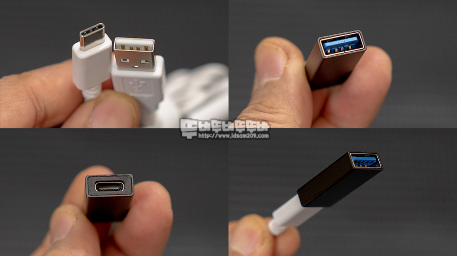 케이블 연장 시 사용 가능한 USB-C to A 변환 젠더 사용 모습.