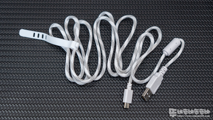 충전 또는 리시버 연장으로 사용되는 USB-C to A 케이블은 파라코드가 사용된 케이블을 사용하여 충전 중에 사용하더라고 유연하게 사용이 가능하며 휴대 시 케이블을 잘 정리할 수 있게 실리콘 타이를 기본으로 제공하고 있습니다.