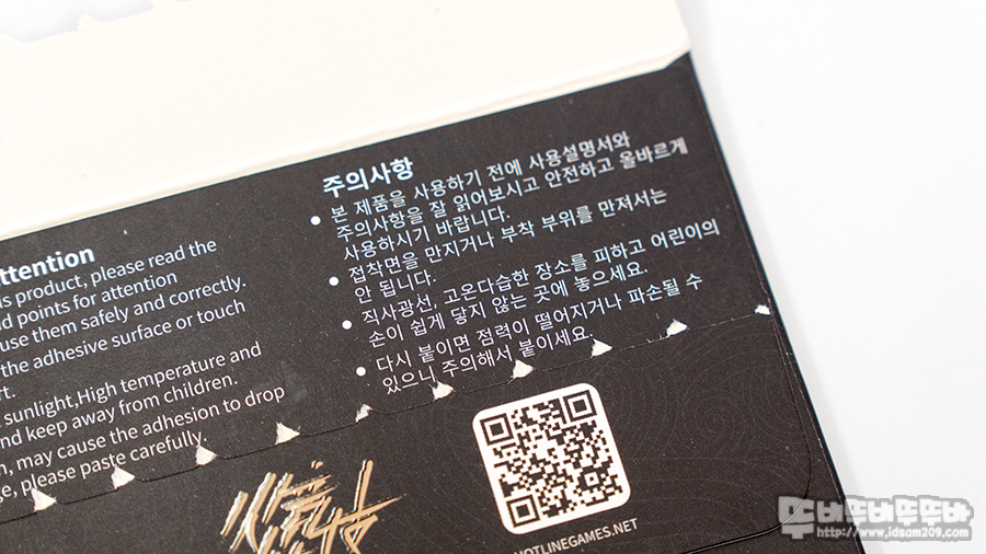 핫라인 게임즈 논슬립 패치 STR버전 패키지는 제품의 이미지가 표현되지 않는 공용 패키지로 디자인된 거 같습니다.