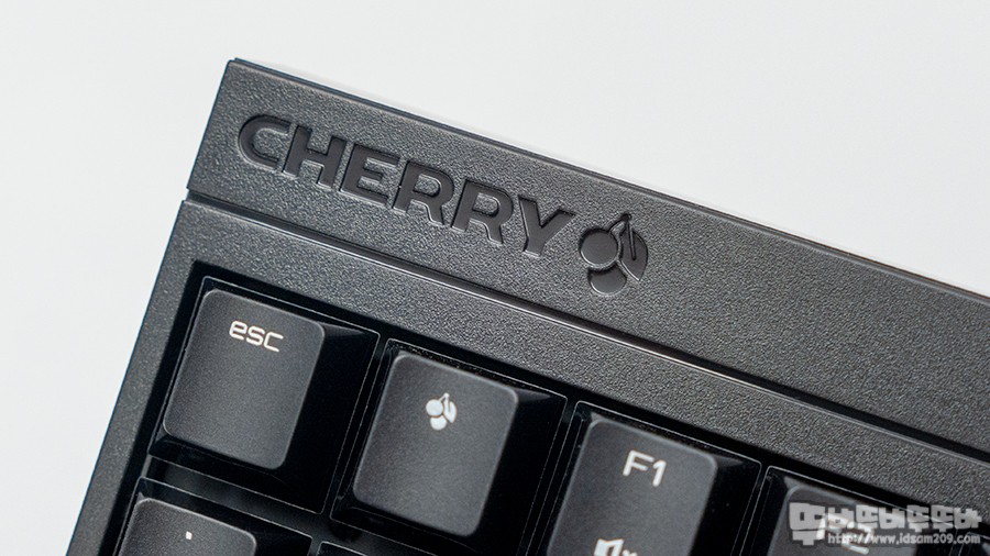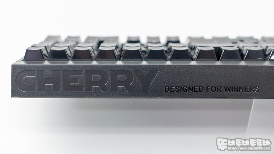 체리 MX BOARD 2.0S 무보강 기계식 키보드의 각진 하우징에 상단과 상단 엣지 부분에는 체리 로고와 디자인 수상에 대한 각인이 되어있어 이전의 제품과는 조금 다른 느낌을 주고 있습니다.