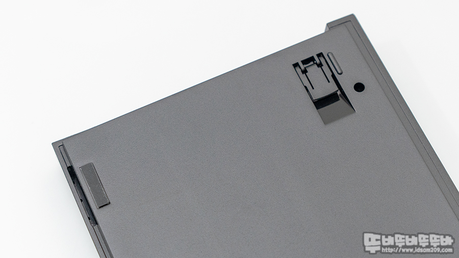 자체 경사 모델이기에 높이 조절 다리를 이용 시 약간의 높이 조절이 가능하지만, 미끄럼 방지 패드가 없기에 장패드 같이 미끄럼이 덜한 표면에서 사용하셔야 키보드 밀림을 조금이나마 방지할 수 있습니다.