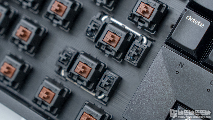 제가 리뷰하는 제품은 블랙 하우징에 체리 MX 갈축 스위치 사용 그리고 한국어 레이아웃이 적용된 제품입니다.
