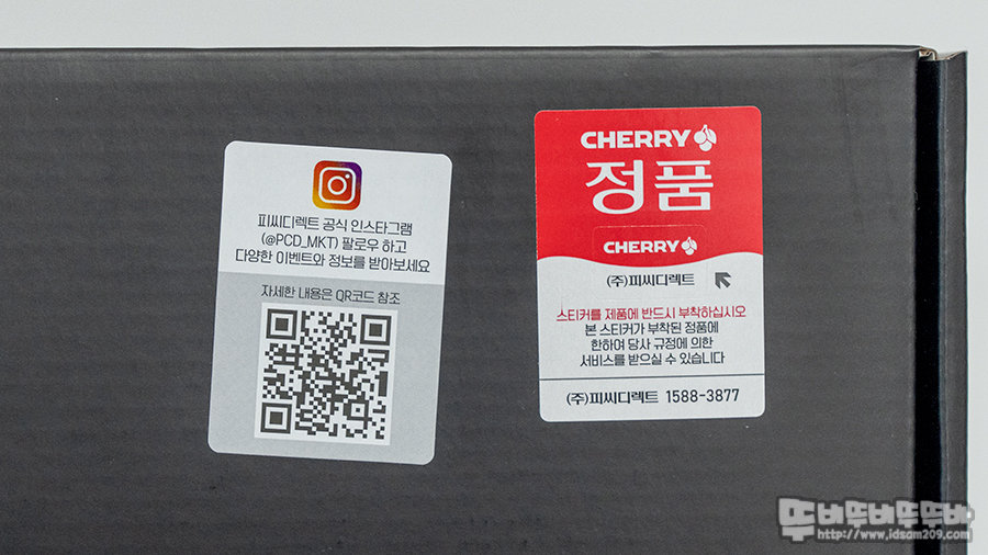 제품 상단에 유통사 피씨디렉트 QR코드와 정품인증 스티커가 부착되어있습니다.