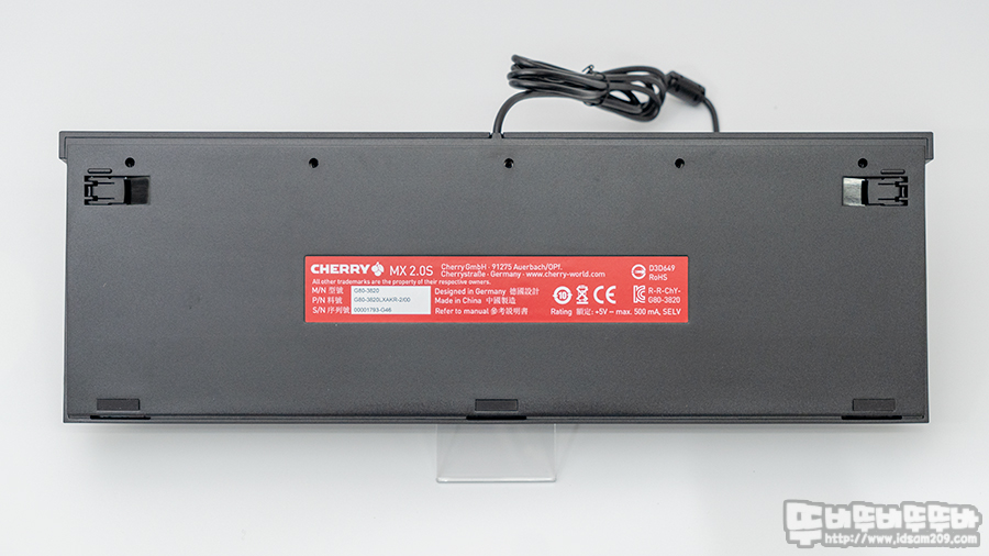 체리 MX BOARD 2.0S 무보강 기계식 키보드의 각진 하우징에 상단과 상단 엣지 부분에는 체리 로고와 디자인 수상에 대한 각인이 되어있어 이전의 제품과는 조금 다른 느낌을 주고 있습니다.