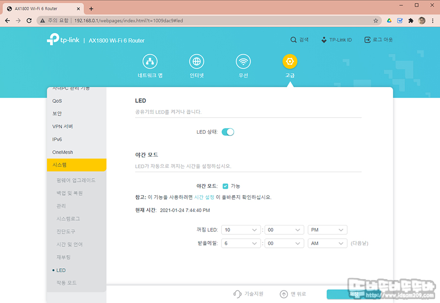 작동상태를 알려주는 LED 인디케이터는 고휘도 LED가 아닌 일반 LED를 사용하고 있어 심야에 광량이 덜한 편이며 소프트웨어를 통해 지정된 시간에 LED On/Off 기능을 제공합니다.