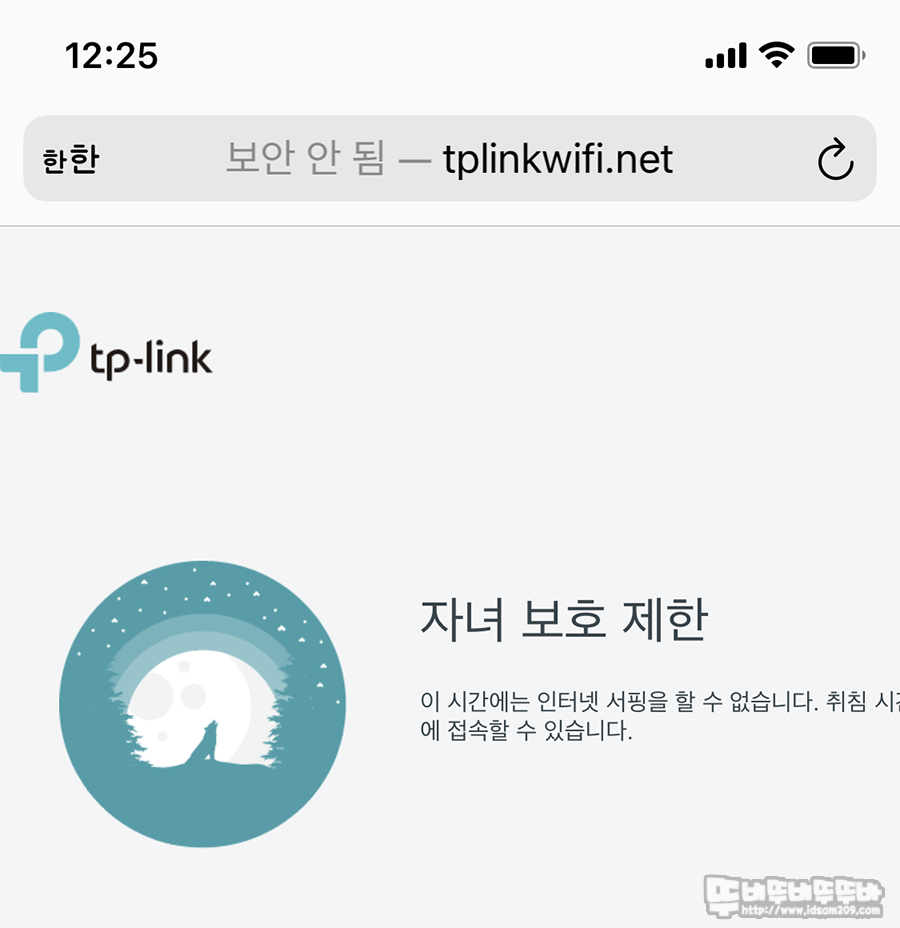 테스트로 제가 스마트폰을 제한을 걸어두고 연결 테스트를 해보니 지정된 시간에 접속이 안 되네요. ^^;
