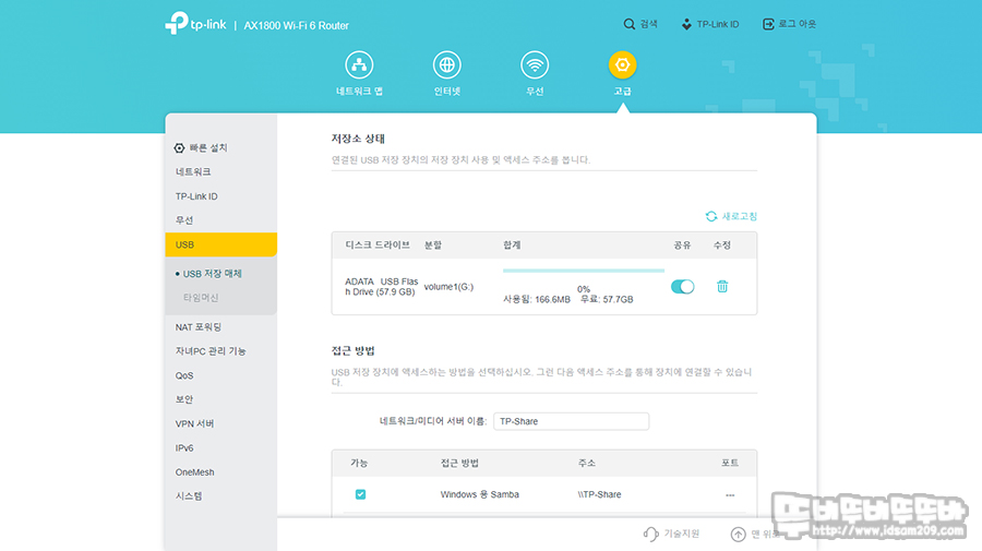 ▶ USB 포트를 이용한 네트워크 드라이브 활용