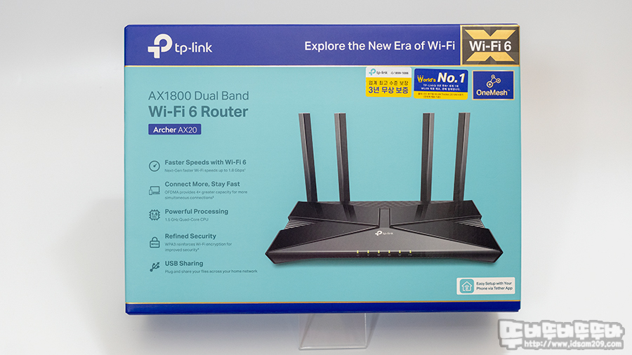 그 외에는 차세대 무선 표준 WiFi6 지원과 9년 연속 세계 1위 판매업체라는 문구와 One Mesh 기능 지원에 대한 내용이 눈에 띄었습니다.