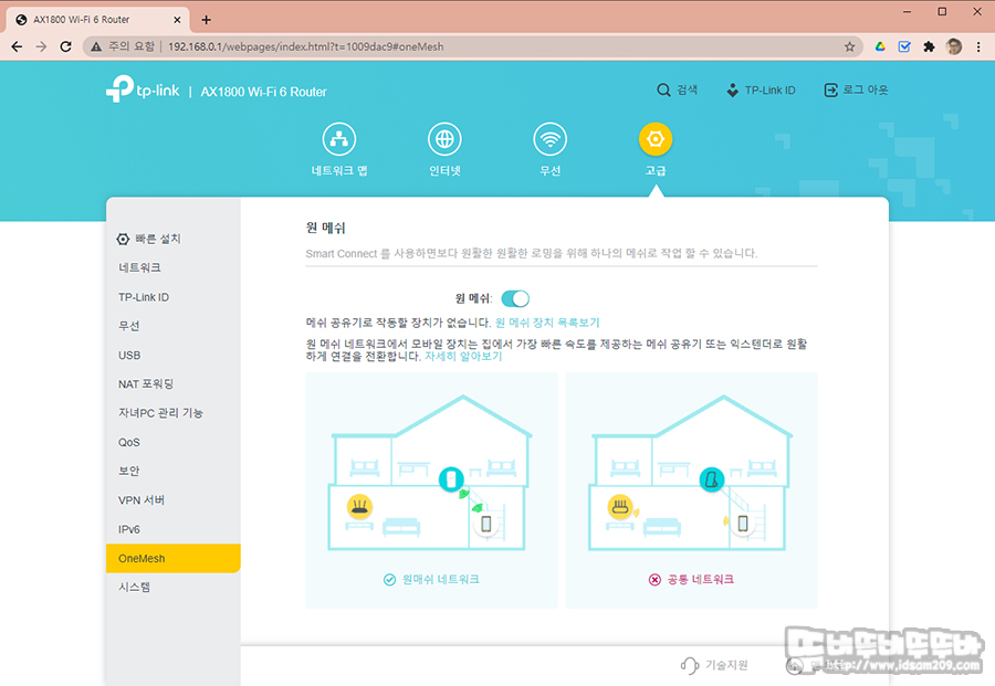OneMesh는 티피링크 Archer AX20을 메인 라우터와 OneMesh 익스텐더 사용 시 사용한 기능으로 추가되는 장비가 없어 테스트해보진 못했네요.