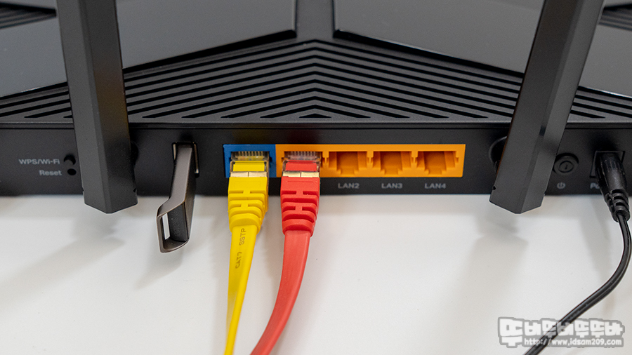 통신사 모뎀에서 나오는 랜 케이블을 파란색 컬러 WAN 포트에 연결하고 오렌지 컬러의 4개의 포트 중에 하나를 PC와 연결 그리고 공유기 USB 포트에 64GB USB 메모리를 연결하여 유선 및 무선 속도 테스트와 공유기를 통한 네트워크 스토리지 기능을 살펴볼 예정입니다.