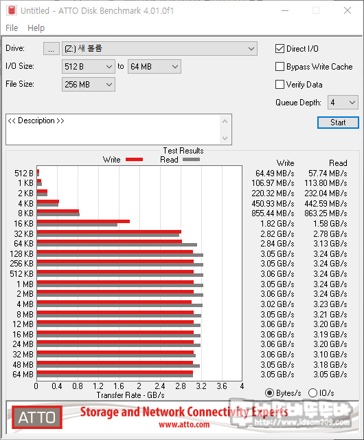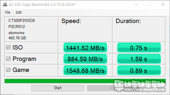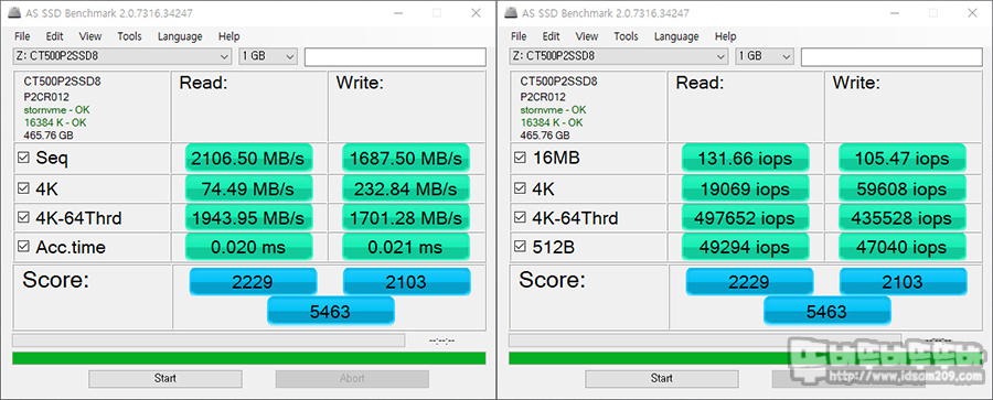 CrystalDiskMark 보다는 전체적으로 낮게 측정이 되었지만 프로그램마다 편차가 있으니 참고로 봐주시기 바랍니다.