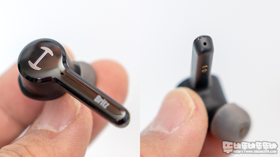 이어버드는 Britz 로고가 있는 스틱 부분을 터치하여 다음의 기능으로 사용이 가능한데요.