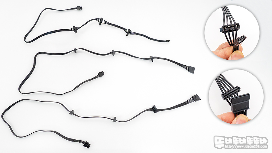 ▷ 4개 커넥터로 구성된 1,050mm 길이의 SATA 전원 케이블은 2개