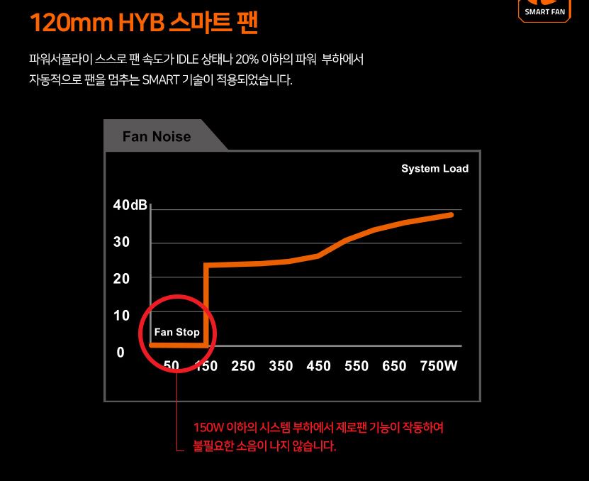 특히 전면에 사용된 120mm Hydraulic Bearing 쿨러는 20% 미안인 150W 이하의 부하에서는 작동하지 않는 제로 팬 기능을 제공하여 부하가 많지 않은 작업에서는 정숙한 컴퓨터 사용을 지원합니다.