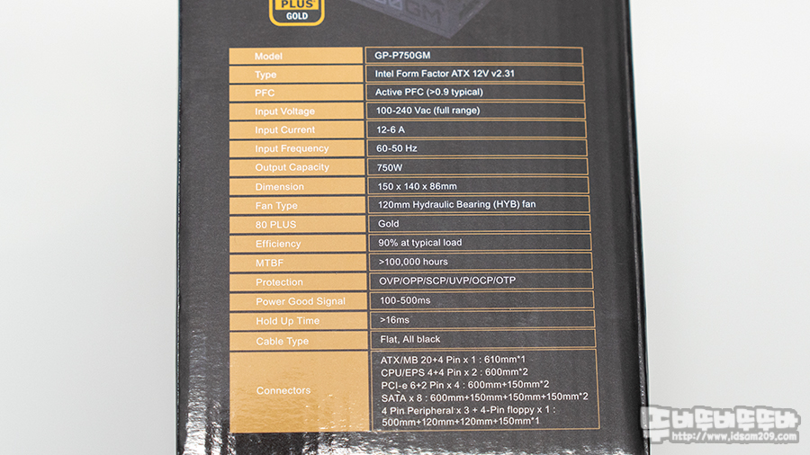 GIGABYTE P750GM 파워 서플라이는 풀 모듈 방식이면서 길이가 140mm 짧은 편으로 다양한 케이스에 활용이 가능한 외형과 90% 효율을 보여주는 80 PLUS GOLD 등급 제품으로 액티브 PFC와 다양한 보호회로를 내장하여 안정성을 제공하는 제품인데요.