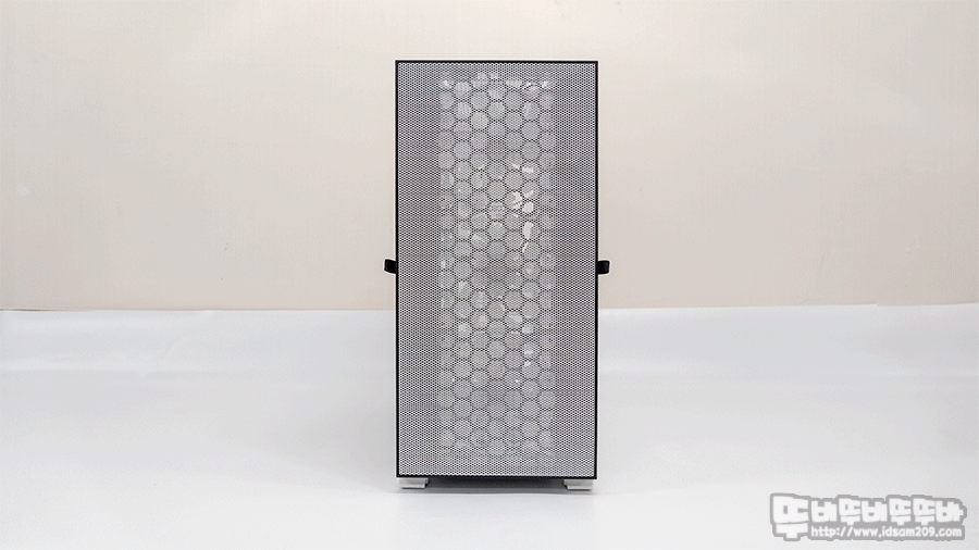 전면 매쉬 패널은 양쪽 모서리 끝부분을 잡아당겨 분리가 가능하며 전면 쿨러 분리나 라디에이터 구성 시 편리하게 작업할 수 있습니다.