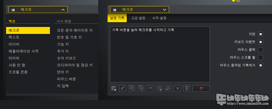 먼저 액션 메뉴에서는 버튼 기능 및 매크로 설정을 담당하게 됩니다.