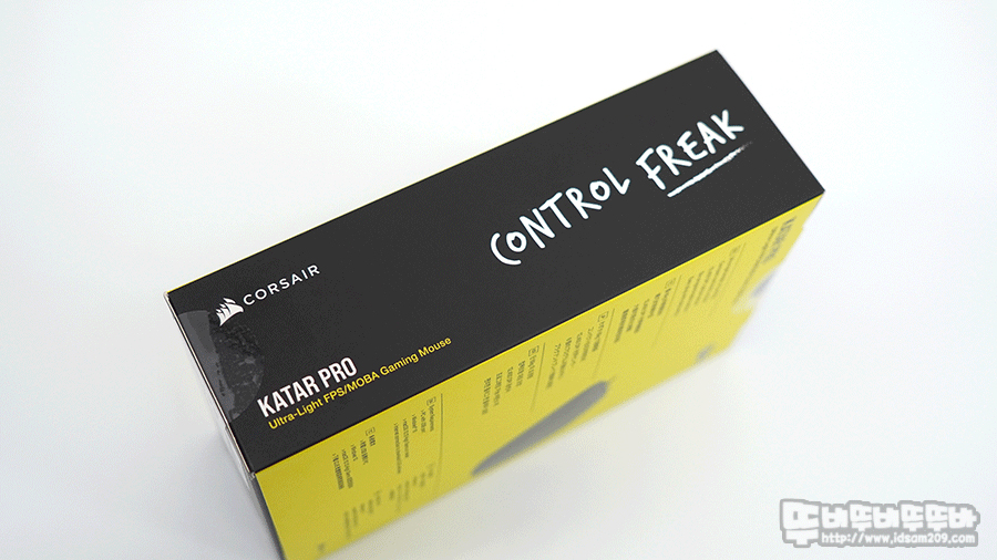 CORSAIR KATAR PRO 게이밍 마우스 패키지는 기존의 커세어 마우스 패키지와 동일한 디자인에 제품 이미지와 모델명을 적용한 게 특징입니다.