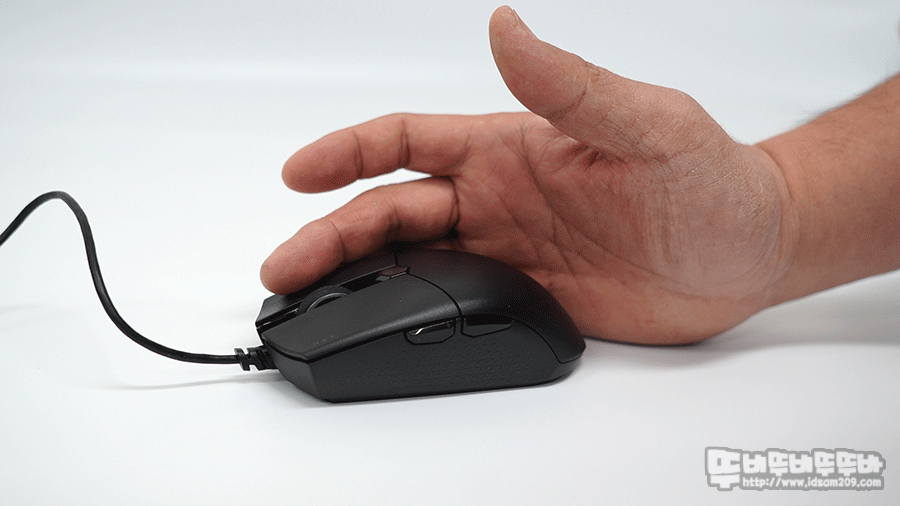 마우스의 양쪽 사이드 부분은 삼각형 모양의 돌기로 미끄럼을 방지하고 있습니다.