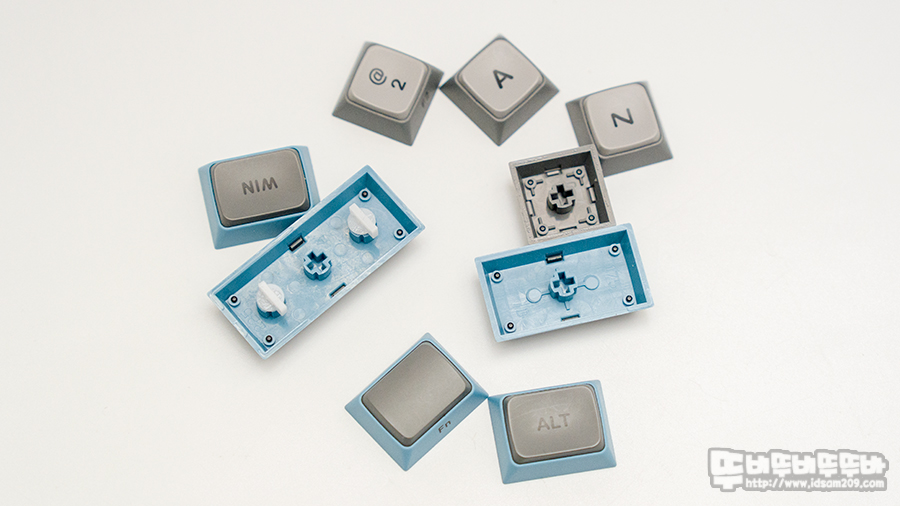 - 왼쪽 Caps Lock, Ctrl 키의 경우 DIP 스위치 조합으로 위치 변경을 하는 경우 편리하게 사용할 수 있게 동일한 사이즈의 키캡을 사용.