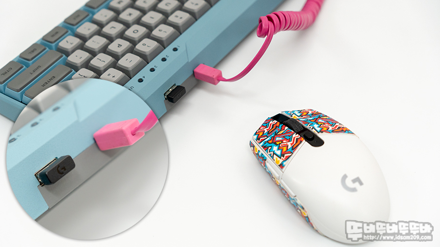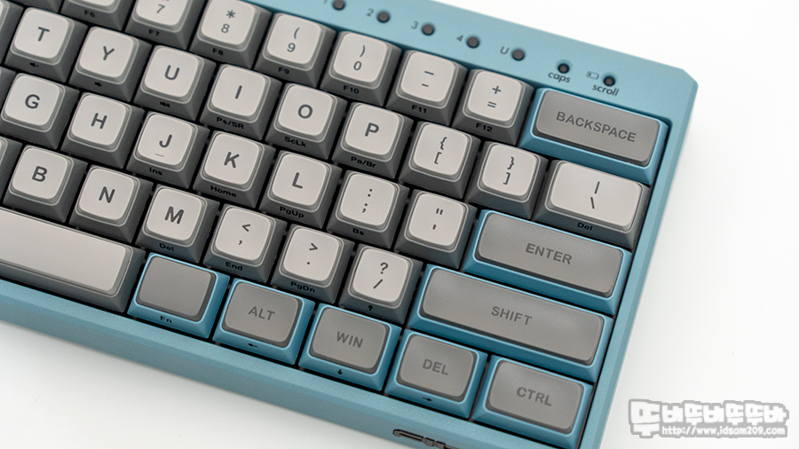 60% 배열의 키보드의 경우 대부분 백스페이스를 Fn 키 조합으로 Del 키로 사용했지만, Fn 키를 사용하지 않고 바로 Del 키를 사용할 수 있는 부분과 별도의 버튼을 눌러 무선 디바이스를 변경할 수 있는 독립적인 멀티 페어링 버튼이 매력적으로 다가왔습니다.